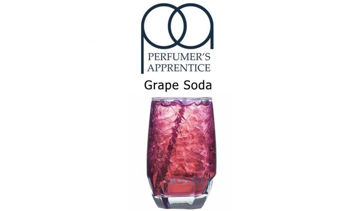 Grape Soda TPA - виноградная газировка от именитой компании. Приятное ощущение содовой и очень свежий, насыщенный виноградный сок. Можно усилить другими виноградными ароматизаторами, либо добавить других фруктов. Рекомендуемая концентрация - 3-5% в рецептах и около 6% в соло.